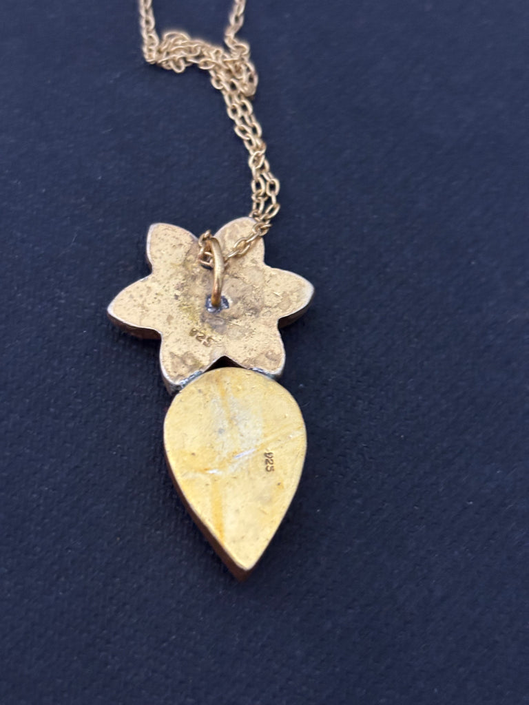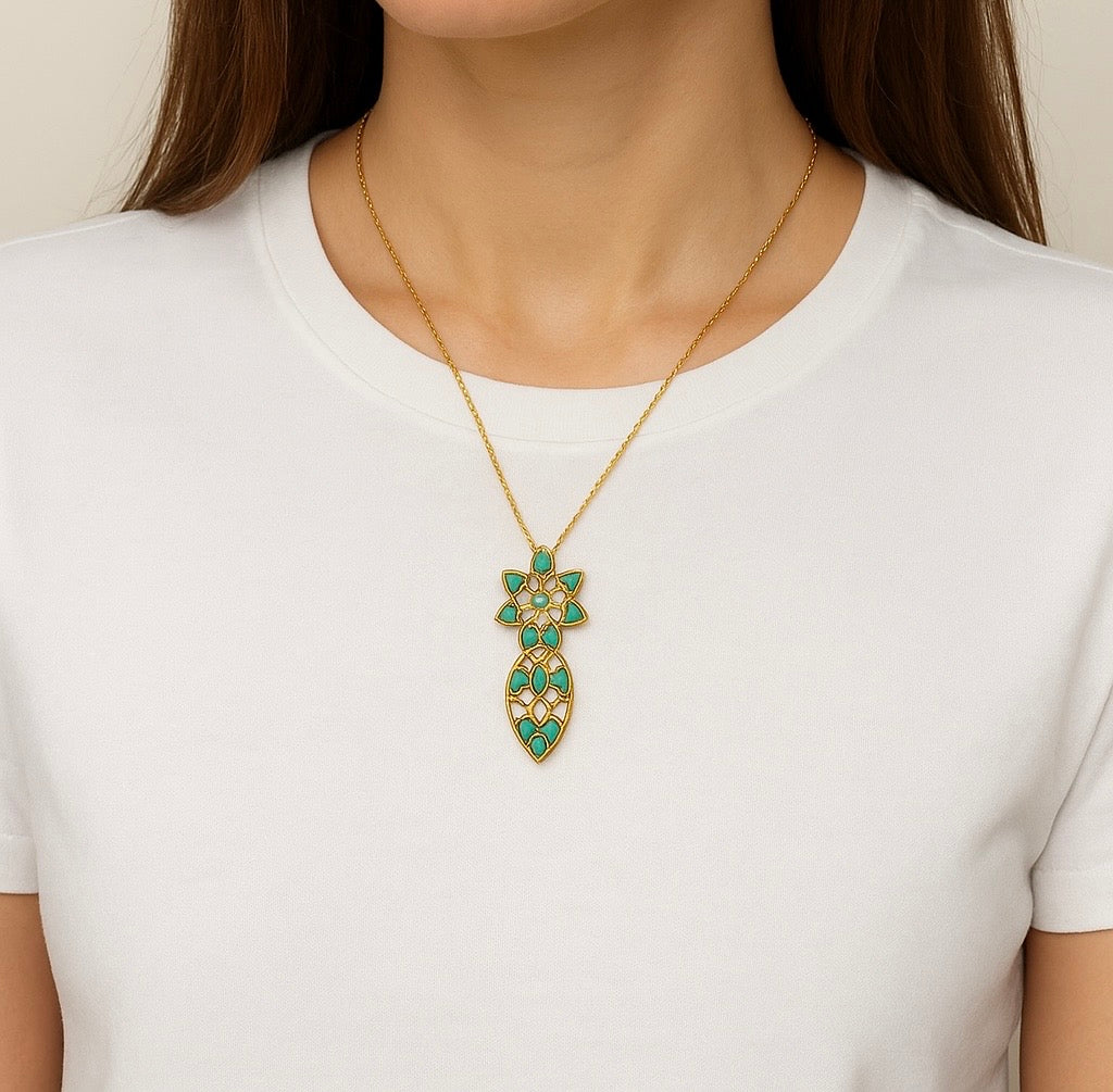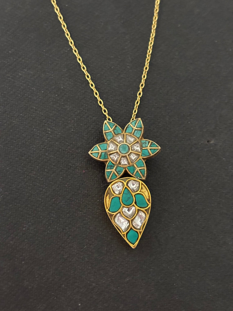 Silver gold plated turquoise and polki jadau work pendant with chain