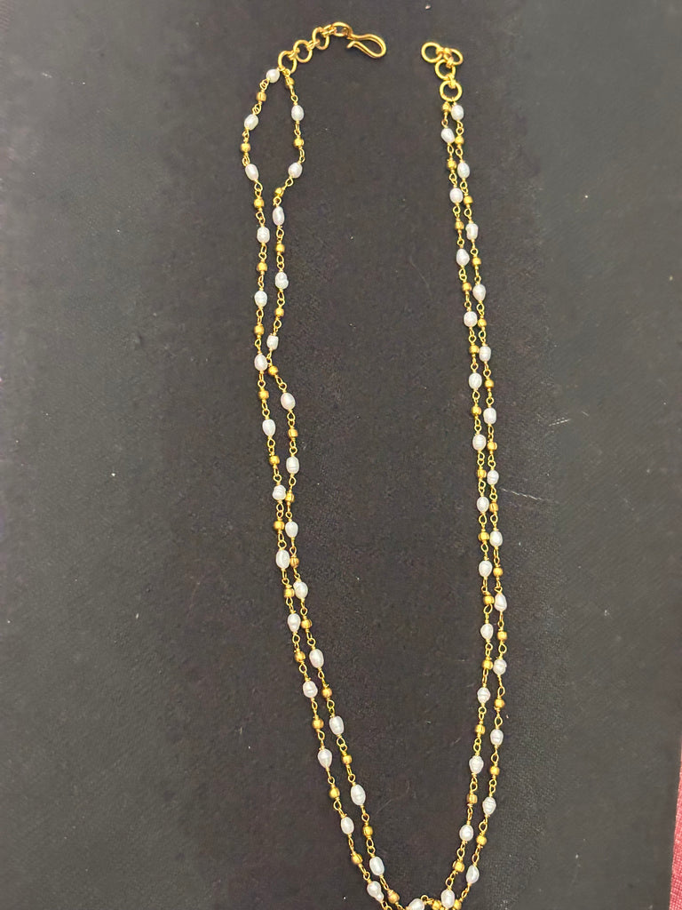 Silver beads gold plated hand made with pearls 2 layer necklace
